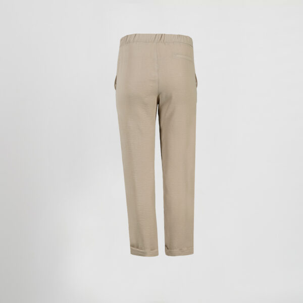 Este pantalón de mujer está fabricado en bambula, un tejido 100% poliéster (PES) que ofrece una combinación única de suavidad y durabilidad. Esta elección de material garantiza una prenda que se siente agradable al tacto y que resiste las demandas de la hostelería.