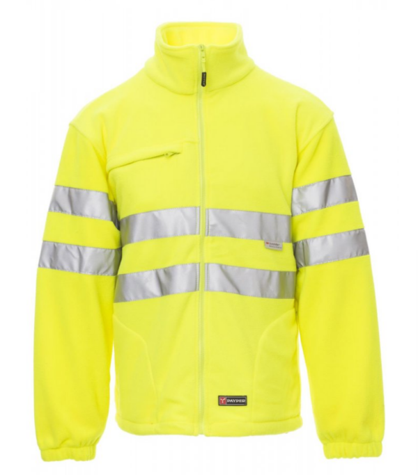 Forro polar de alta visibilidad para hombre con bandas 3M, con cremallera de plástico, cordón ajustable en la cintura, puños elásticos, dos bolsillos con cremallera oculta, un bolsillo delantero con cremallera, costuras reforzadas.