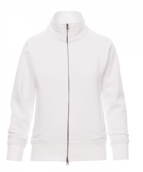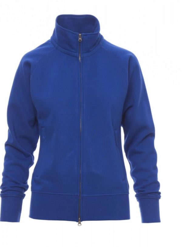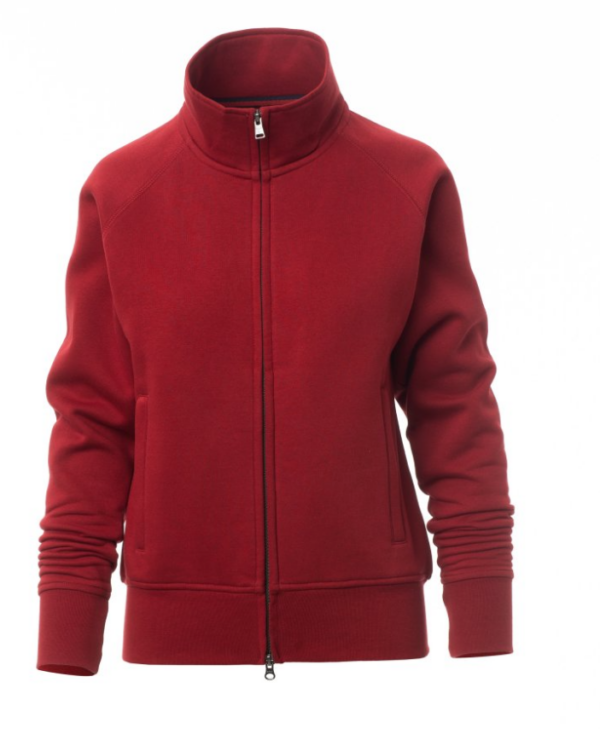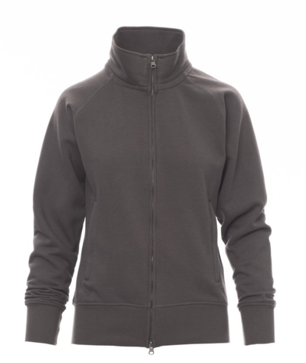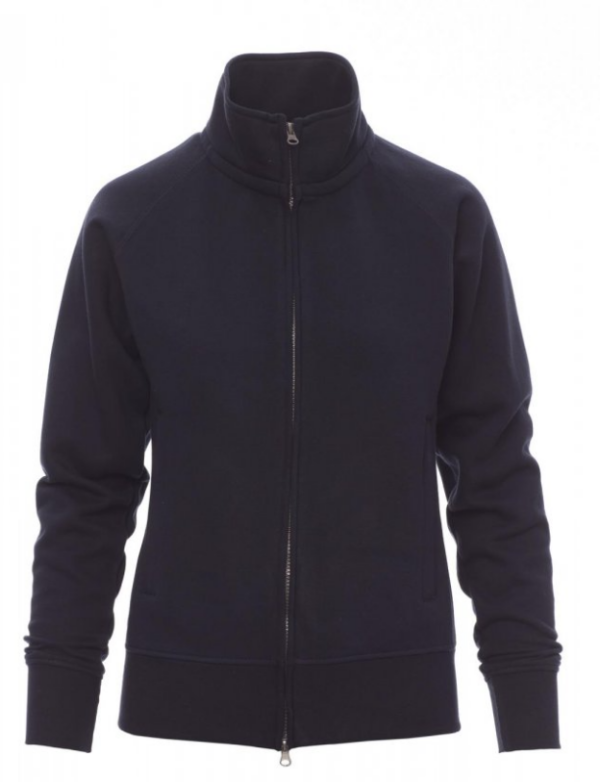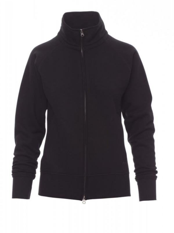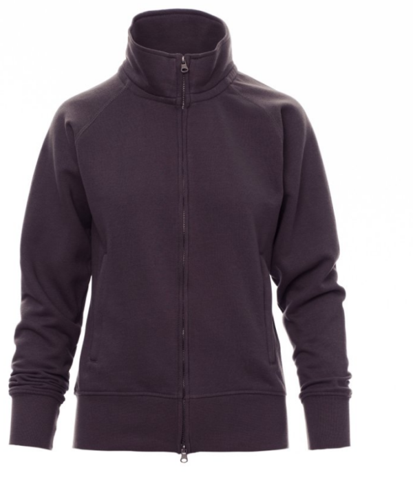 Sudadera para mujer, cremallera completa SBS cubierta, de plástico con doble cursor metálico, mangas ranglán, dos bolsillos con cremallera oculta, puños y cintura elásticos, costuras reforzadas.