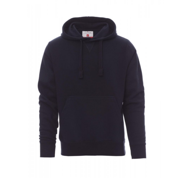 Sudadera con capucha para hombre con cordón a juego, pespunte en cuello de pico, bolsillos canguro, mangas ajustadas, puños y dobladillo elásticos, costuras reforzadas. Cinta en la parte interior del cuello a juego.