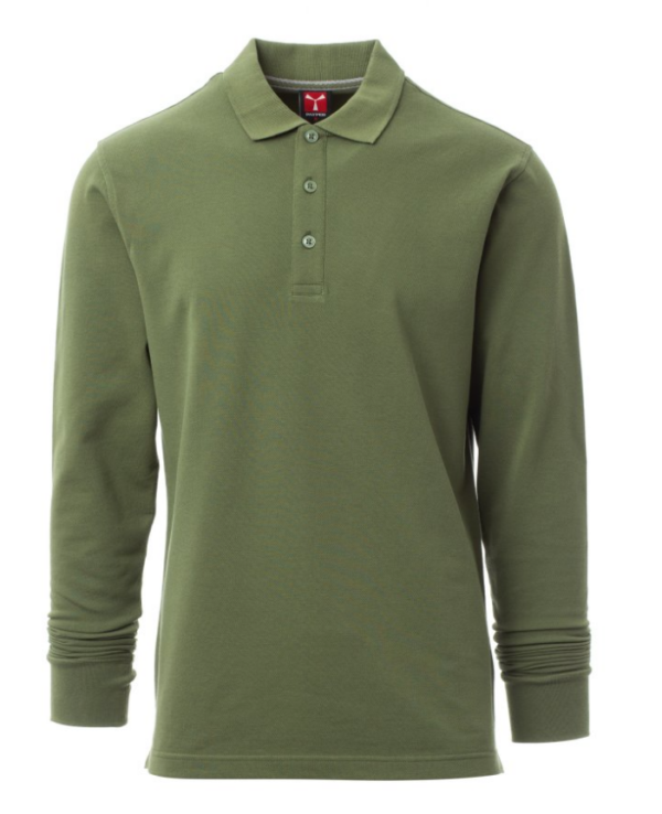 Camiseta polo de manga larga para hombre, con 3 botones efecto nácar a juego, cuello y puños elásticos, ventilaciones laterales, pespunte oculto en cuello con cinta de contraste, costuras elásticas, cinta de refuerzo lateral, cinta en la parte interior del cuello.