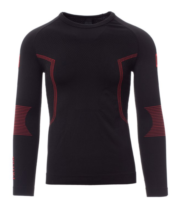 Camiseta térmica de hombre, de cuello redondo y manga larga raglán. Tejido suave y elástico, con tramas especiales en el delantero y en la espalda, motivos de hélice en relieve en los costados para garantizar una buena transpiración y una termorregulación constante. El cuello, el bajo y los bordes de las mangas son de punto canalé del mismo material para un mejor confort. Estructura tubular ergonómica y textura especial en los codos para garantizar una adaptación perfecta a la fisonomía del cuerpo.