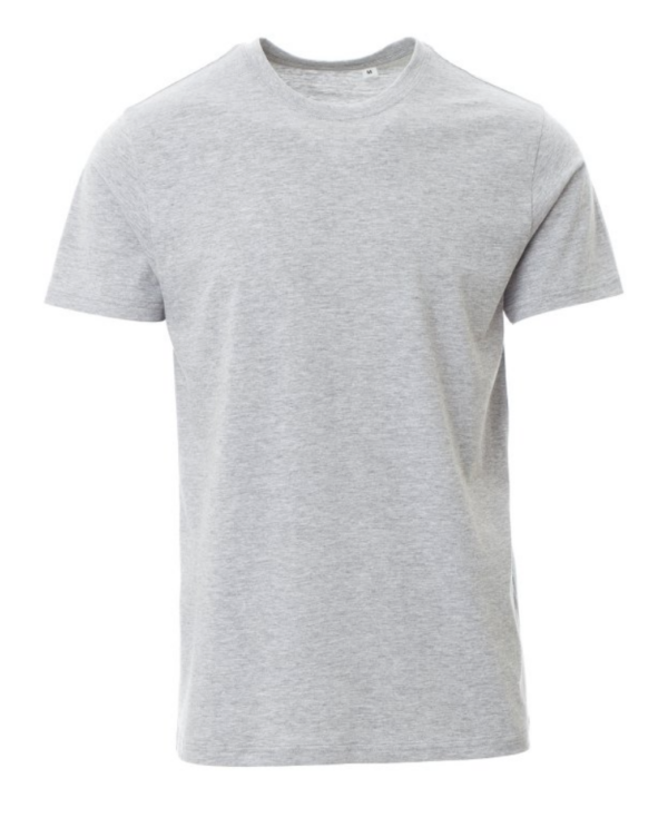 Camiseta de manga corta y cuello redondo para hombre, con banda elástica en cuello de elastano de 1,5 cm con pespunte superior en la parte delantera, cinta de refuerzo de hombro a hombro, costuras elásticas, costuras laterales.