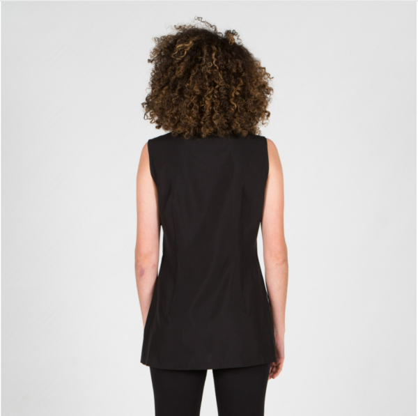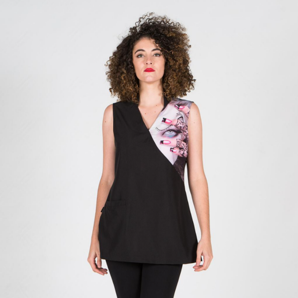 Sofisticación y funcionalidad de la Blusa para mujer "Lilac", una prenda diseñada para destacar en el entorno profesional de la peluquería y el cuidado personal. Esta casaca sin mangas presenta un diseño moderno y elegante, con un bolsillo lateral de vivo que aporta un toque distintivo y una cremallera invisible lateral que garantiza un ajuste perfecto. El escote en pico añade un toque de feminidad y estilo a la prenda.