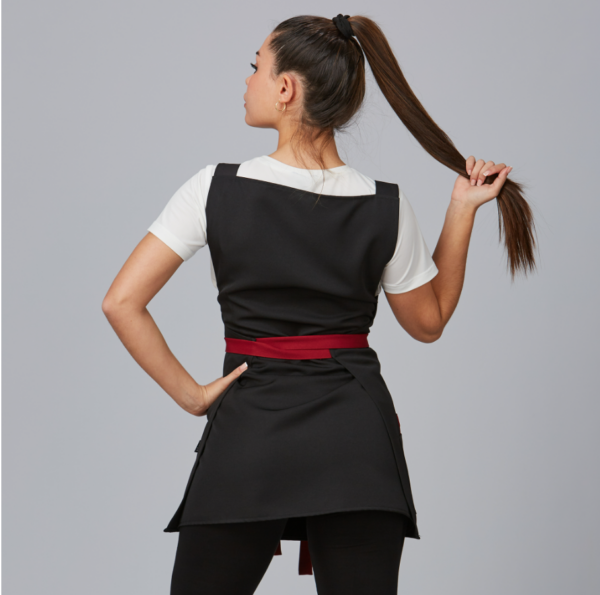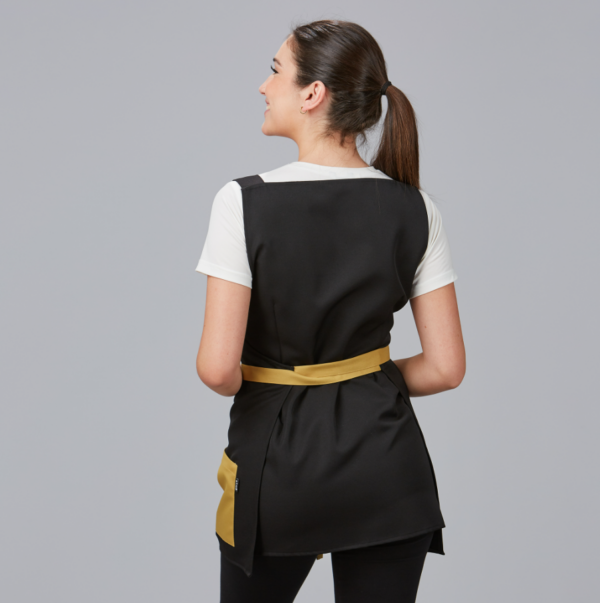 Distinción y estilo en la Casulla Bicolor PROTEA, una opción única diseñada para profesionales de peluquerías, barberías y centros de belleza. Su diseño sin mangas y elegante escote cuadrado, en combinación con el color negro y detalles en dos opciones de color, logran la armonía perfecta entre sobriedad y estilo.