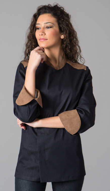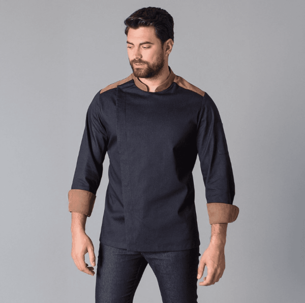 Con mangas en manga larga, puños vueltos y cuello mao, esta chaqueta ofrece una combinación perfecta de estilo y funcionalidad. La antelina marrón en el cuello, puños y hombros agrega un toque de elegancia y durabilidad.