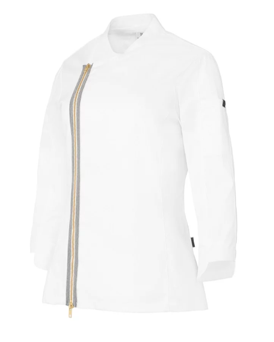 • Manga ¾ con puño asimétrico y con cortes en todo el largo de la manga.
