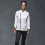 • Cuello mao acabado en forma descendente consiguiendo una imagen elegante y