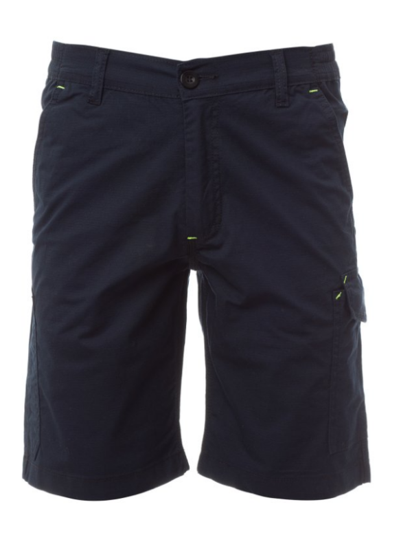 Bermudas de tejido ripstop elástico, ligero, con trabillas y elástico en la cintura, cierre con cremallera y botón en la cintura. Bolsillos delanteros de corte clásico, con bolsillo pequeño portamonedas en el bolsillo derecho (con la prenda puesta) y soporte para metro lateral. Bolsillo lateral izquierdo con tapeta de cierre LOCK SYSTEM. Dos bolsillos posteriores, de los cuales uno con tapeta y velcro. Costuras de triple aguja.