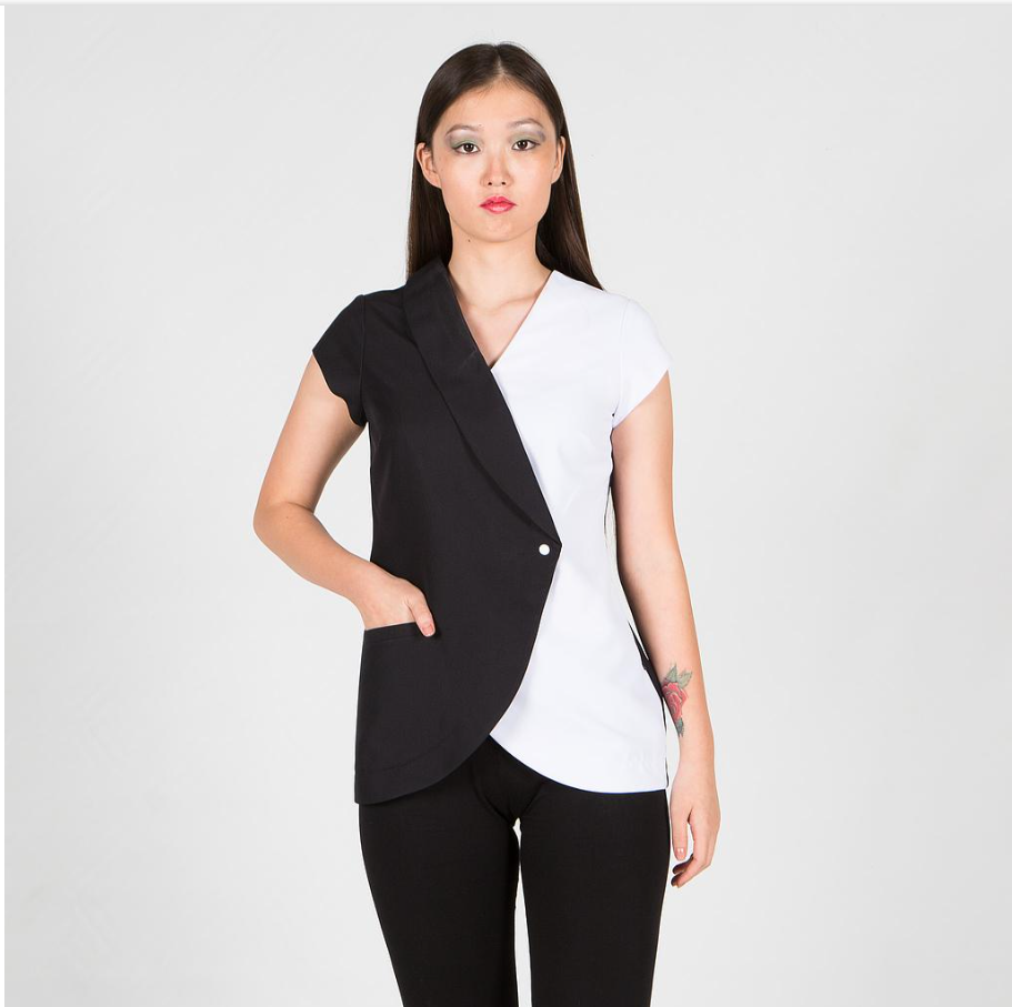 Estilo incomparable con nuestra Túnica para mujer de peluquería, diseñada para profesionales exigentes que buscan destacar en su entorno laboral. Esta casaca básica, en manga corta y cuello pico, combina funcionalidad y elegancia.