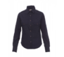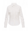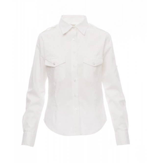 Camisa de trama fina de algodón peinado para mujer, corte ligeramente entallado, canesú en la parte delantera, cierre con botones a juego y ojales en color de contraste, trabillas en los hombros, dos bolsillos a la altura del pecho con tapeta y soporte para bolígrafos, cinta con botón en el brazo para enrollar las mangas. La camisa de color blanco no tiene los ojales en color de contraste y el canesú en la parte delantera. Tejido de cuidado fácil.
