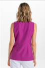 Chaqueta sin mangas de microfibra color púrpura. Abrachada con cremallera negra en diagonal. Dos amplios bolsillos inferiores. Largo: 69cm. Prenda muy ligera, de secado rápido y fácil planchado.Propuestas: centros de estética, spa, comercios y dependencia en general.