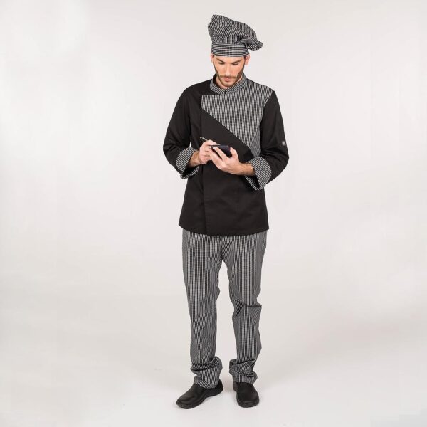 Confeccionado en PLANA de cuadros blancos y negros de luto (50% Poliéster - 50% Algodón).