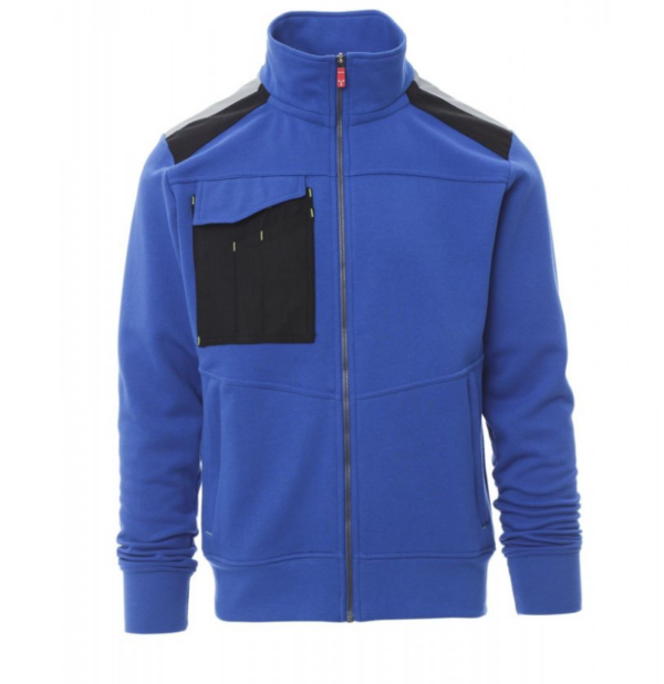 Sudadera para hombre, cremallera completa de SBS de plástico y cursor de metal con sistema de bloqueo semiautomático, dos bolsillos con cremallera, un bolsillo multifunción en el pecho son soporte para tarjetas oculto con tapeta y sistema de cierre LOCK SYSTEM, bandas reflectantes en los hombros, puños y cintura de canalé elástico, doble costura en el cuello, mangas y cintura, con cinta de refuerzo en el cuello. Tratamiento hidrorrepelente del tejido.