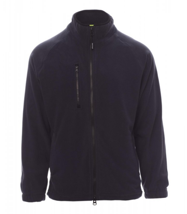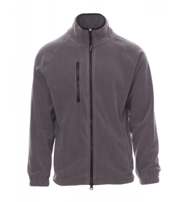 Forro polar para hombre, con cremallera de 8 mm de plástico negra, mangas ranglán, cordón ajustable en la cintura, puños elásticos, dos bolsillos con cremallera oculta, un bolsillo delantero con cremallera, cuello con cinta de refuerzo de contraste, costuras reforzadas.